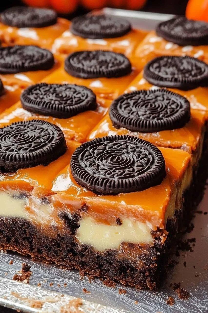 When it comes to Halloween desserts, you want something that’s indulgent, visually fun, and easy enough to pull off that you’re not stressing before the party. These OREO Layered Halloween Brownies tick all those boxes: rich fudgy brownies, a hidden or visible layer of OREO cookies (ideally the Halloween-edition ones with orange filling), a bold orange frosting layer, then a finishing chocolate frosting and cookie crumble topping. According to one blog they’re “the ultimate spooky treat… gooey brownie base, crunchy Oreos, bright orange frosting” My Homemade Recipe.